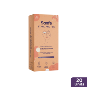 "Sanfe is women health care and wellness product, which gives the women freedom to stand and pee, avoiding the contact with the dirty toilet seats, and preventing them from infections prevalent using the public washrooms. Sanfe is also useful for the pregnant women, women having the knee pain, back pains and osteoarthritis as they have to suffer each time, while they squat on the toilet seats and urinate. Sanfe is a biodegradable solution designed by IIT Delhi professors and alumni, which is menstrual friendly, one handed grip for Indian attire. It is a preventive measure of Urinary Tract Infections, and hence prevent the women from the UTIs, germs and other infections.