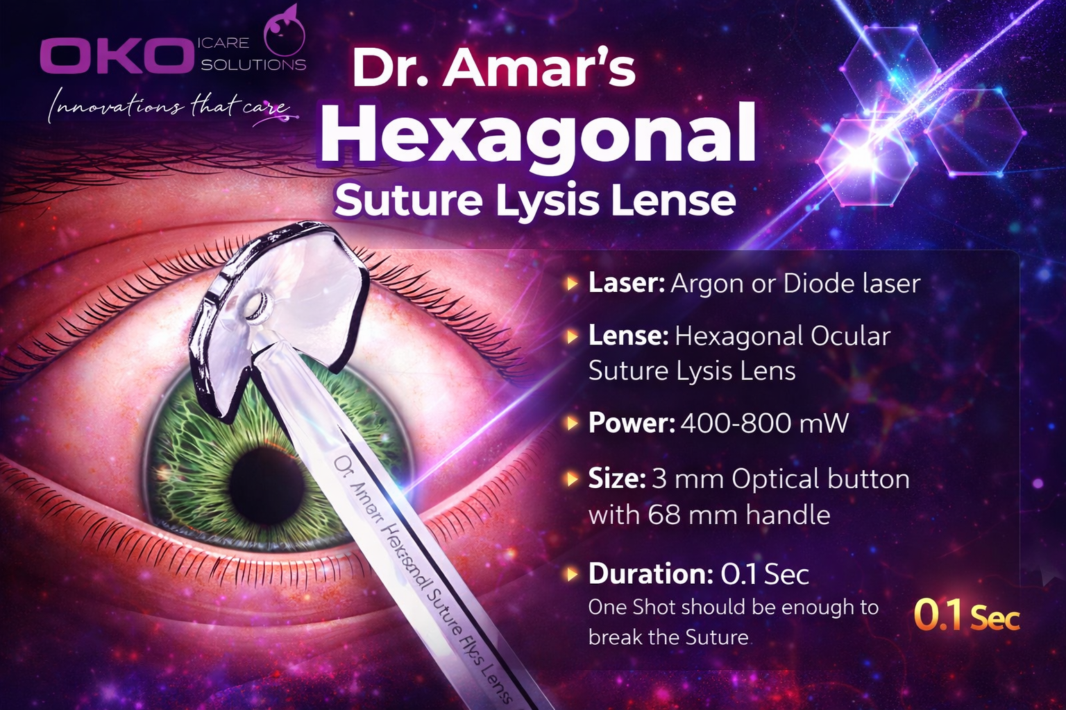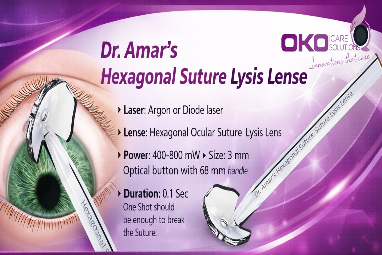 Hexagonal Ocular Suture Lysis Lens, Accuway – An Intra Ocular Pressure Monitoring Device
